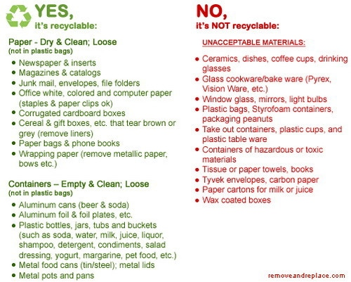 - Recycle clean plastic bottles, clean cans, paper, books, newspapers, catalogs, and junk mail. Plastics #1, #2, #5, and #7 are allowed if clean.